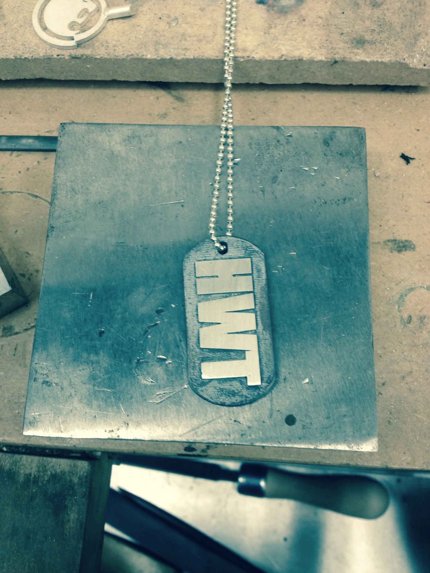 I'm filing these dog tags. I designed them on Thursday, and it's only Monday—they're ready for sale!